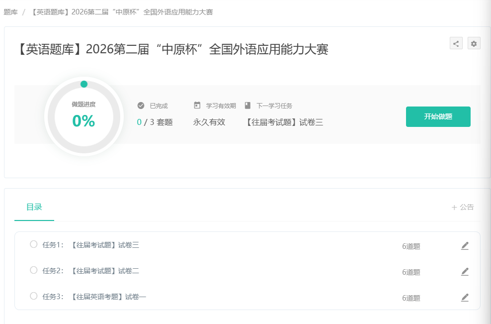 英语题库链接:【英语题库】2026第二届“中原杯”全国外语应用能力大赛 - 赛氪教育