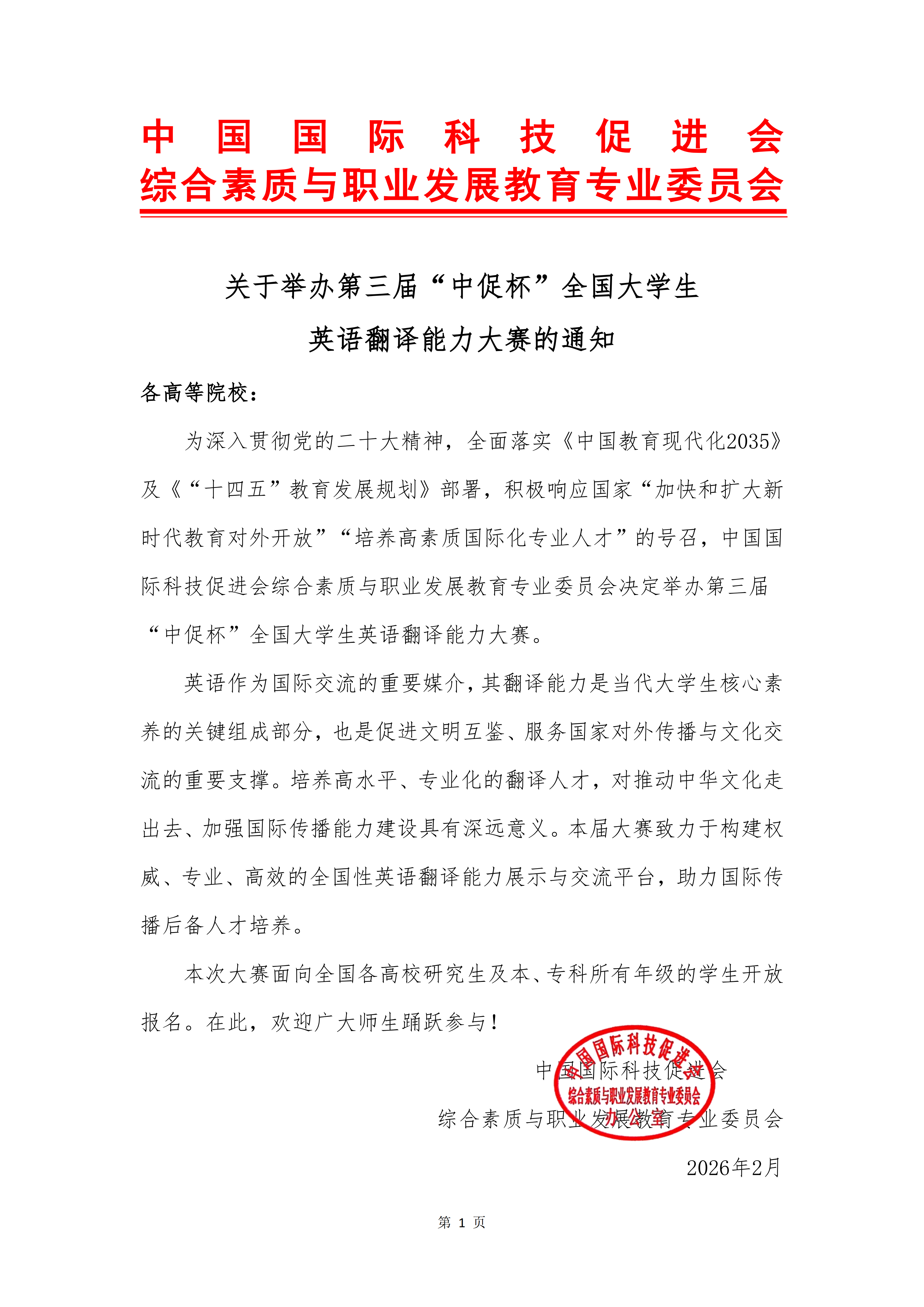 官方通知|第三届“中促杯”全国大学生英语翻译能力大赛