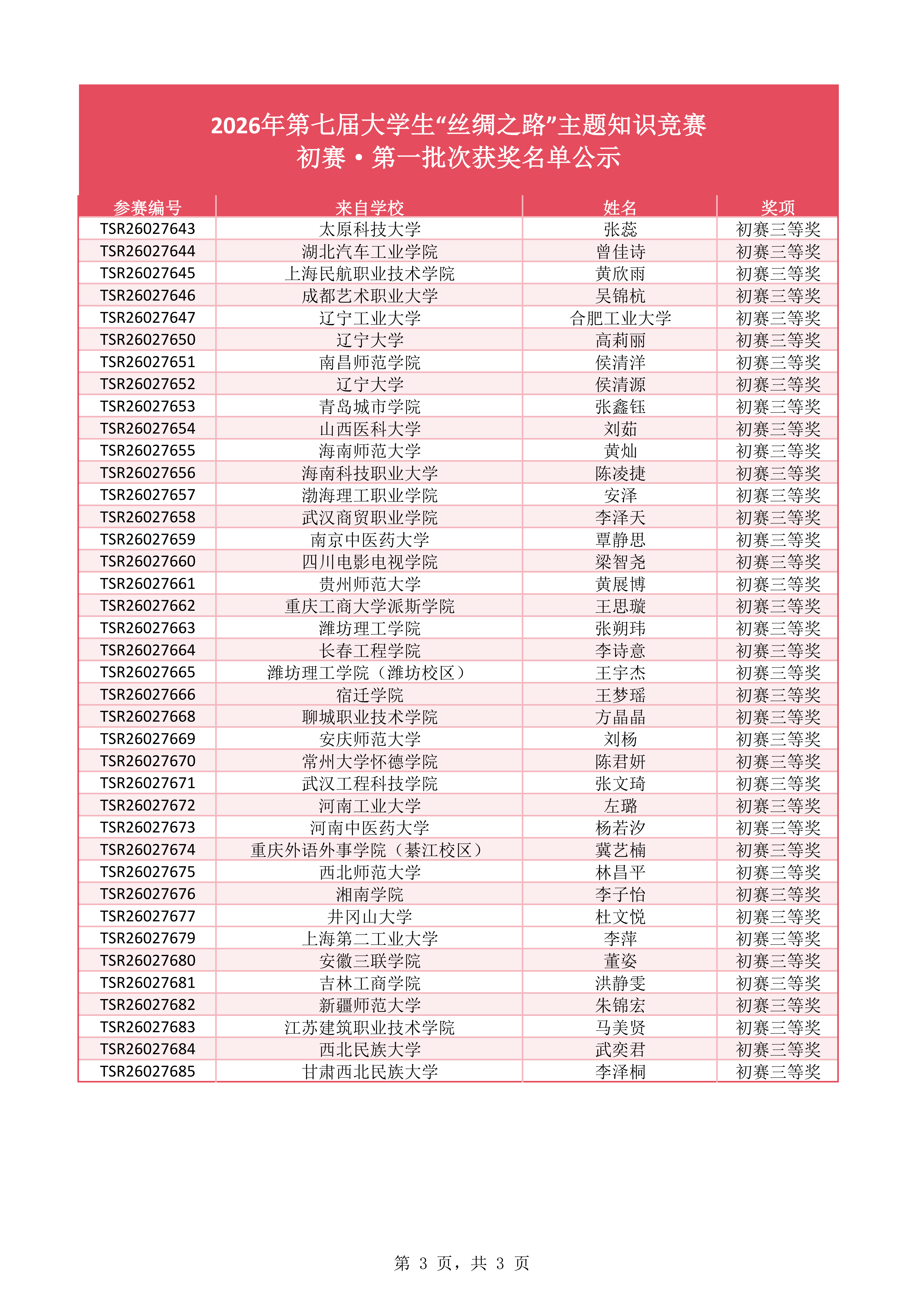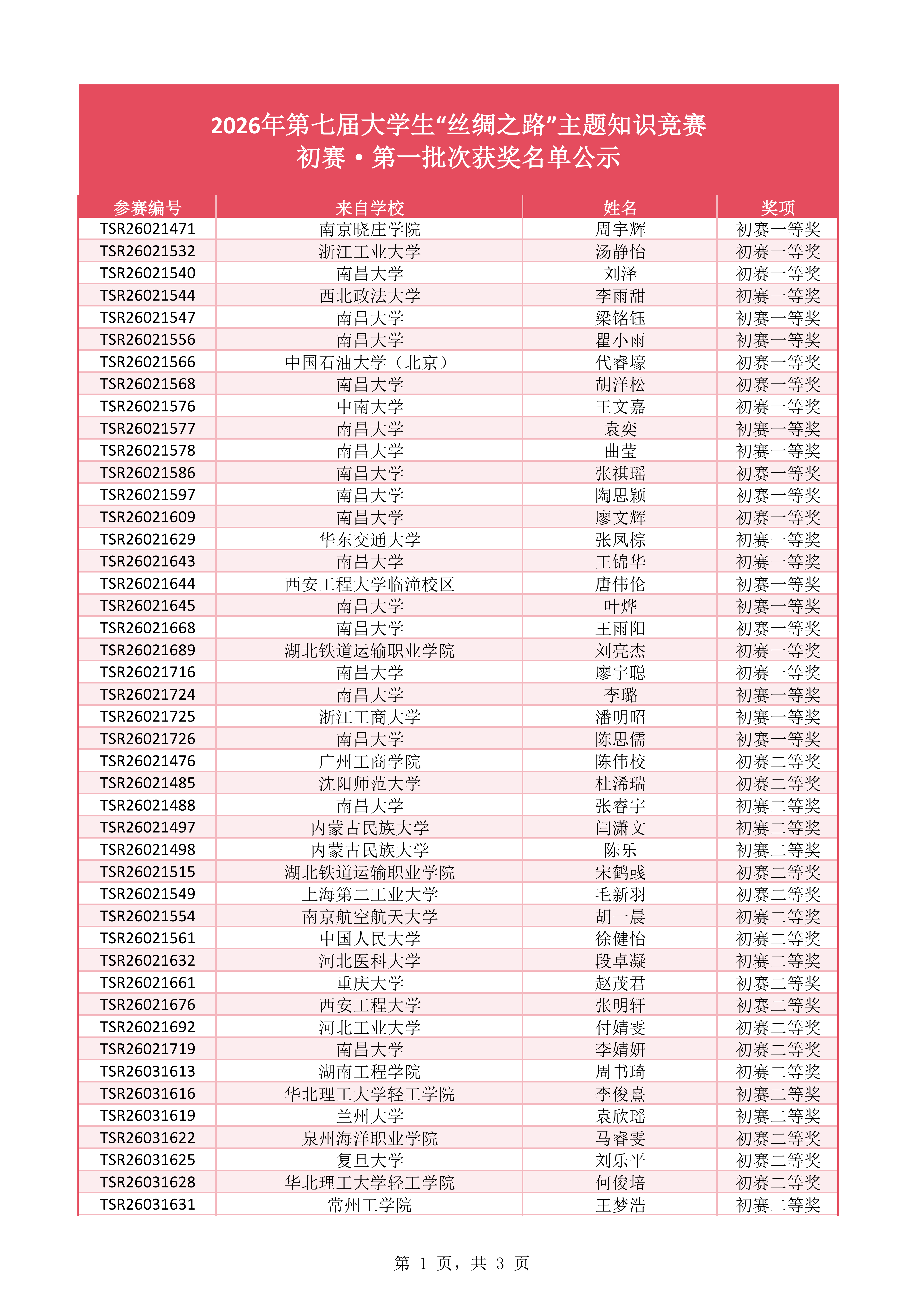 注:本赛事仅公示前三等奖获奖情况,优秀奖和最佳参与奖请各位同学前往赛事页面,报名手机号的登录,报名管理,选择查看我的成绩位置;另外请各位同学严格核对个人电子版证书,有问题请自行及时修改,无误后领取纸质版证书!