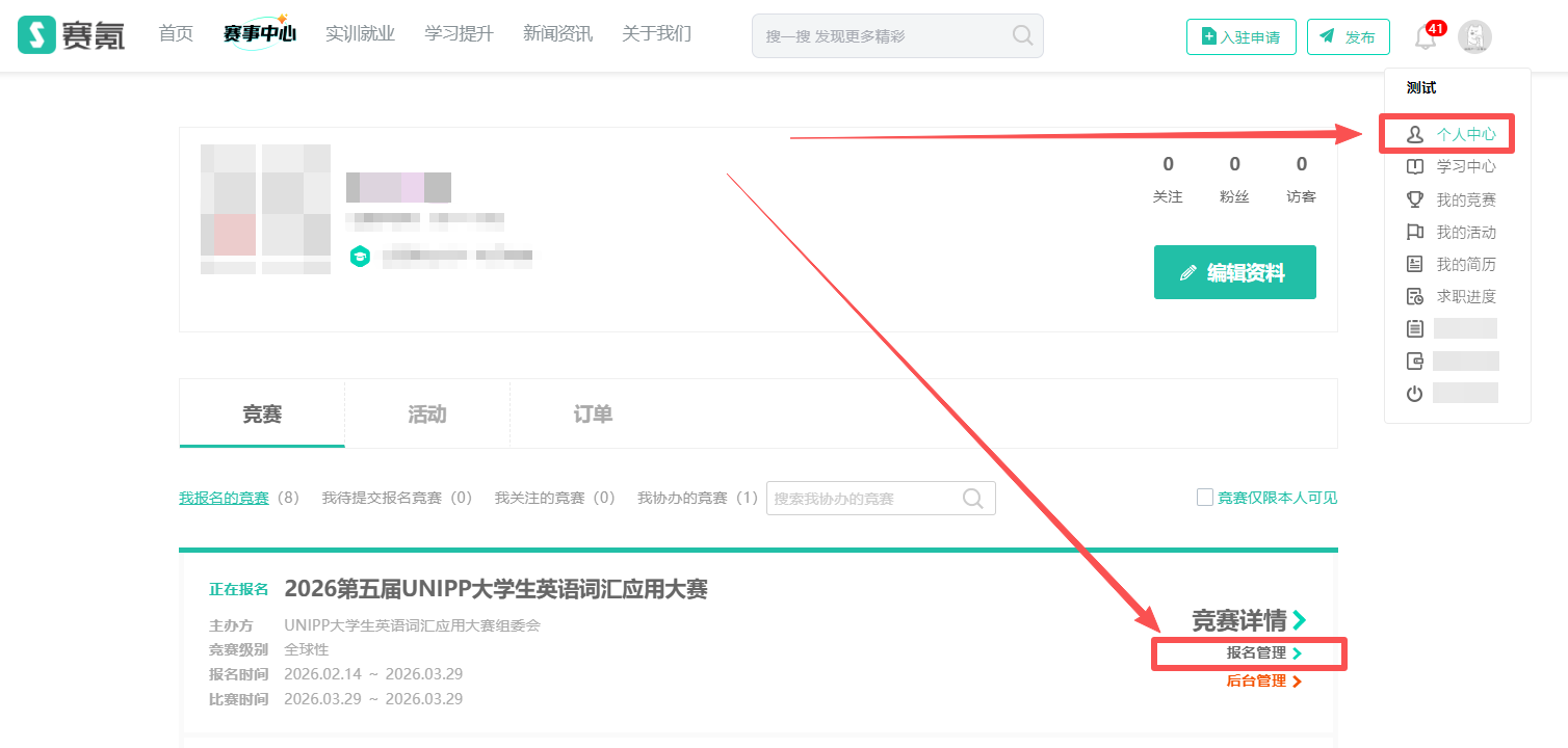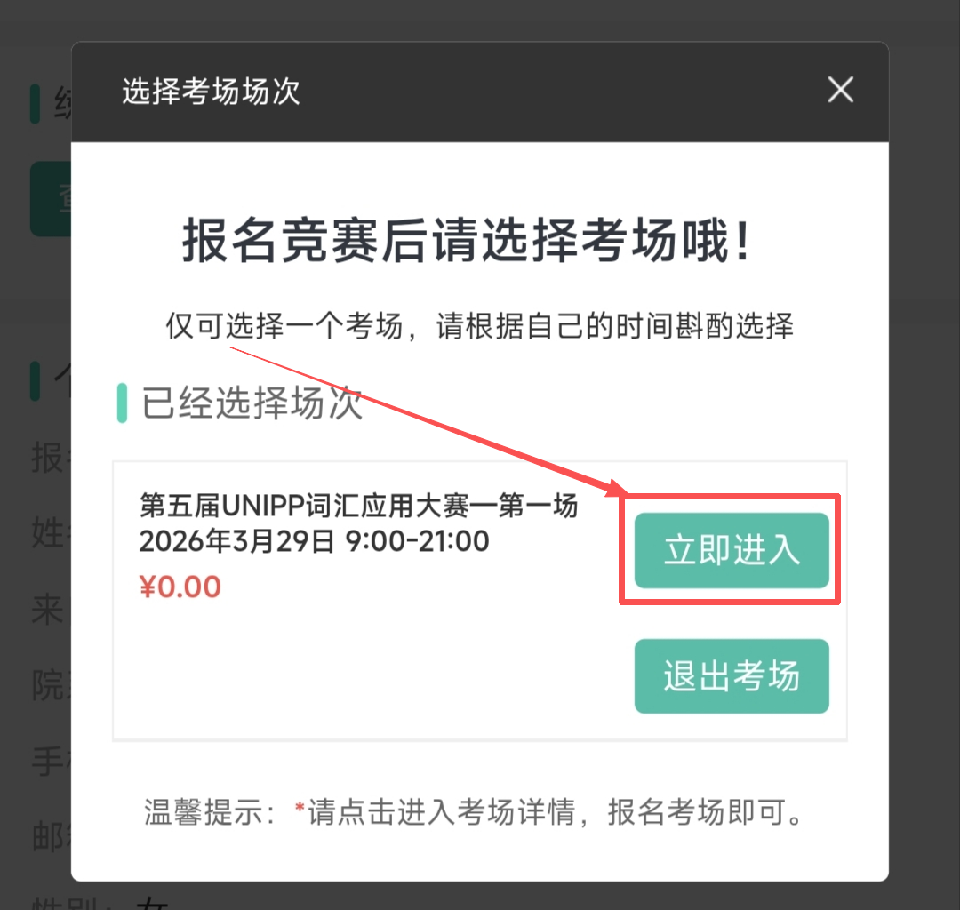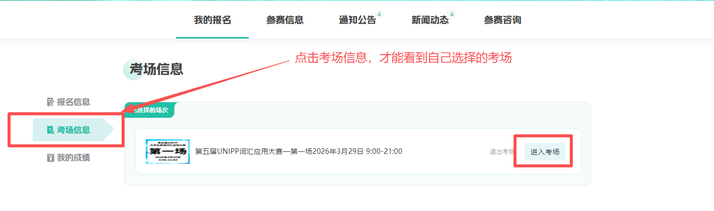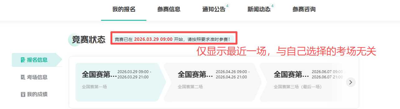 登录大赛官网-个人中心-我报名的竞赛-报名管理-考场信息-进入考场