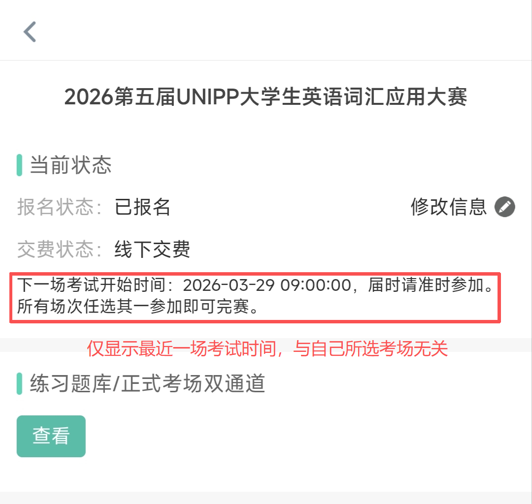 8.报名管理处仅显示最近一场考试时间,与自己所选考场无关!请以自己选择的考场为准!