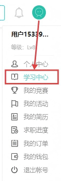 【第一步】:在赛氪官网:https://new.saikr.com 登陆报名账号,将鼠标放在个人头像处,在跳出弹窗中点击【学习中心】
