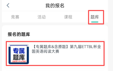 1.手机端:赛氪APP-登录报名赛事账号-我的-报名-右上角题库