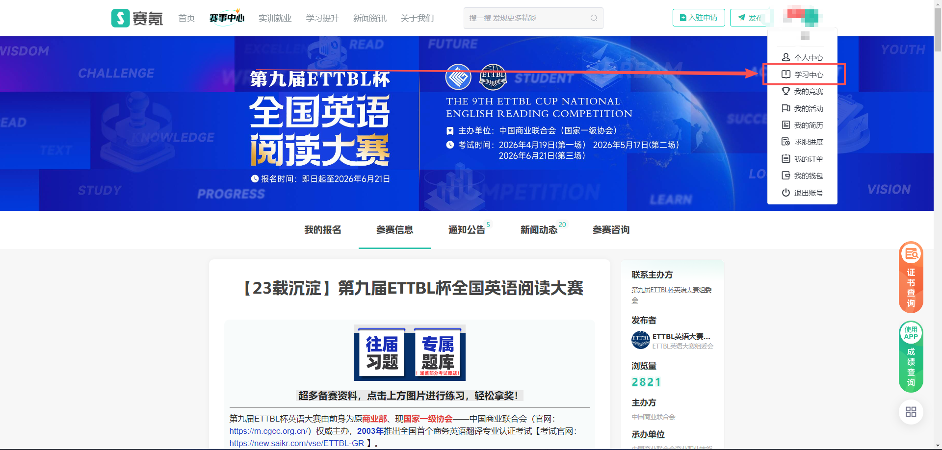2.电脑端:大赛官网 - 学习中心 - 我的题库