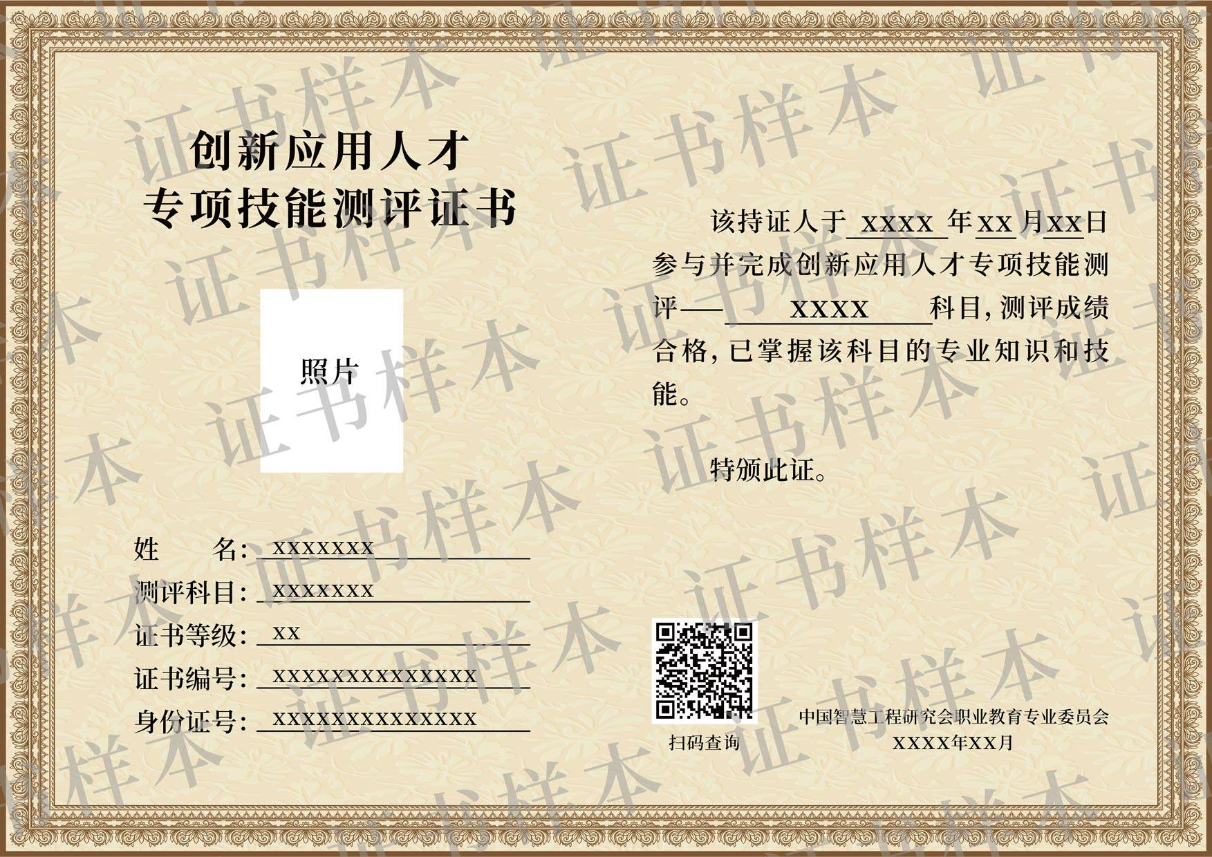 该证书聚焦创新应用人才专项技能,不仅直观反映持有者学科知识应用水平,更展现其在多元场景下灵活运用专项技能的实操本领,提升个人在创新型人才市场中的核心竞争力。该证书由中国智慧工程研究会职业教育专业委员会评定并网上注册。