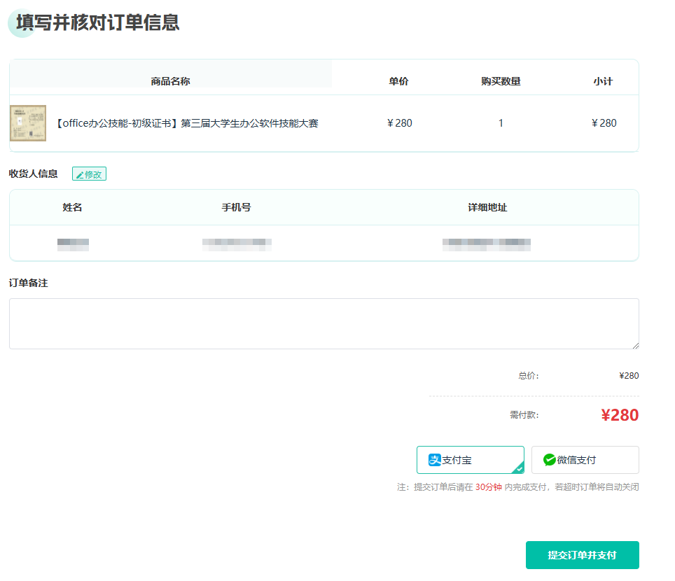 ④核对订单信息