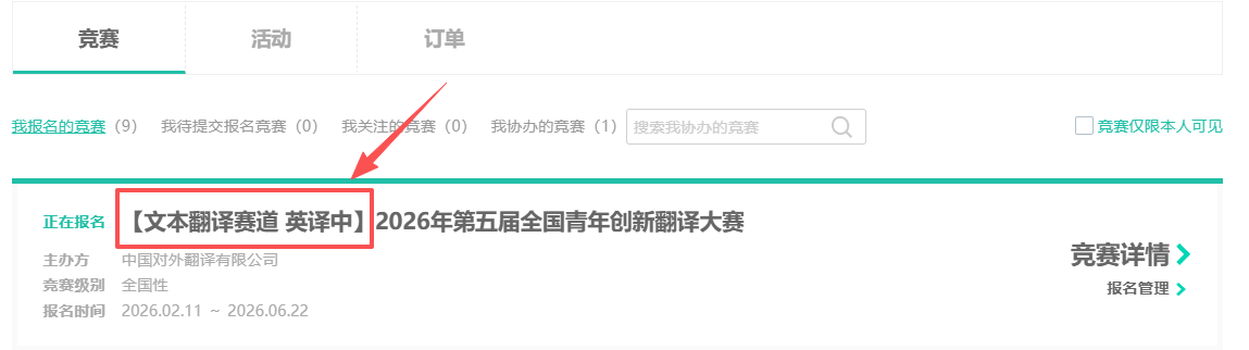 A:找到自己报名的竞赛,竞赛名字前会有标注。