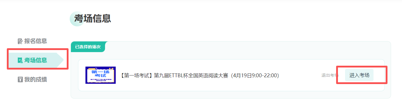 登录大赛官网>个人中心>我报名的竞赛>报名管理>考场信息>进入考场