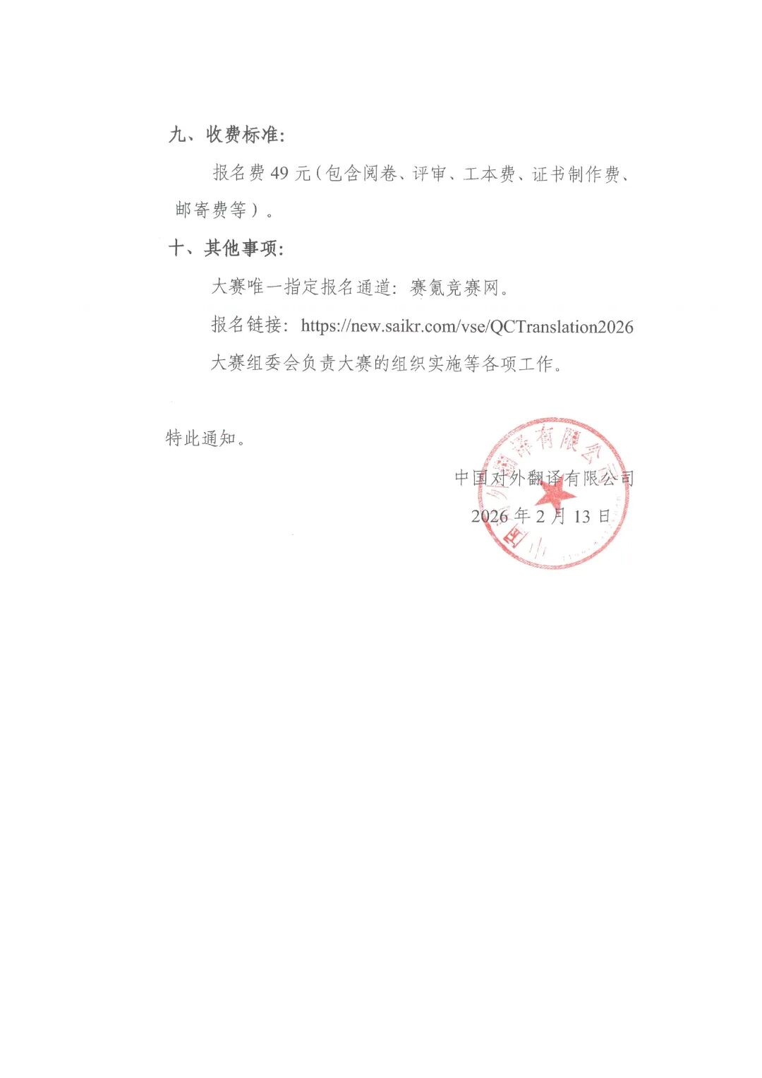 赛事通知