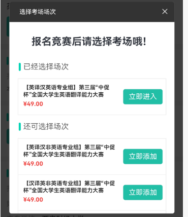 ③ 选择【所选对应组别】 → 点击【立即进入】,即可进入考试。