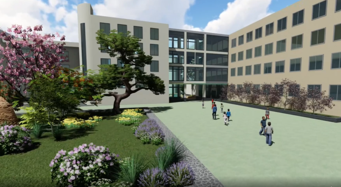 在针对小学生的校园景观更新设计中,小学生是设计的主体,他们需要更多的可能性。儿童对未知事物的探索驱使他们接触新鲜事物,在本设计中,将学生分成较小的群组可以帮助学习如何使用共享空间。将学生进一步划分为微型社区“将使学生在保留社交交流的好处的同时,减少对大型密集校园常见的疾病传播途径的接触”,于此同时,排水系统应用海绵城市理论,结合本身地形坡度,利用透水铺装,减少地表径流,以及雨水花园过滤等进行雨水的归纳收集,改善校园原本排水不畅问题。再通过蓄水池供应门口喷泉以及校园植物灌溉。在植物的选择上,也根据不同根茎,进行分析。景观中可见水区域少能够有效减少细菌滋生威胁。