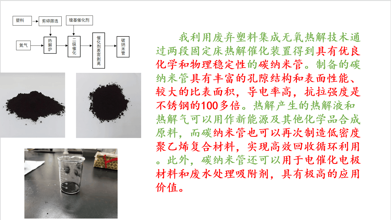 作品名称:废塑料制备碳纳米管及高附加值产物( 实验室催化剂工艺 )