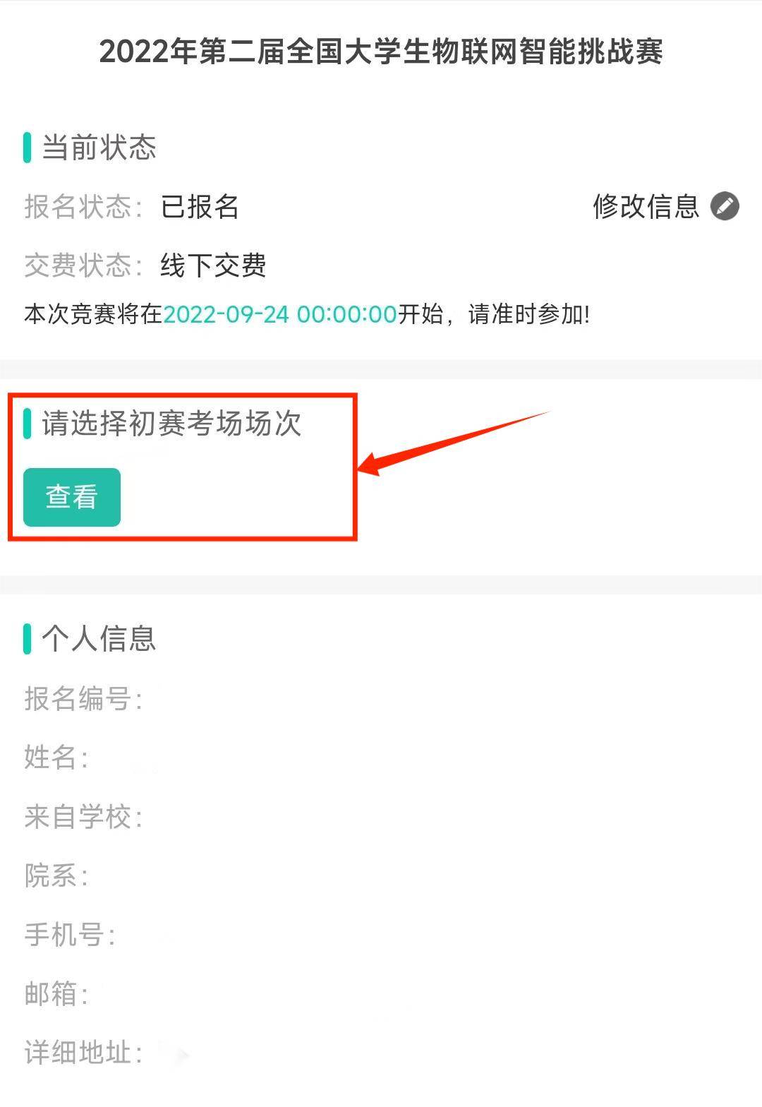 初级赛道考场已上线,已完成报名的各位同学可进行考场选择。