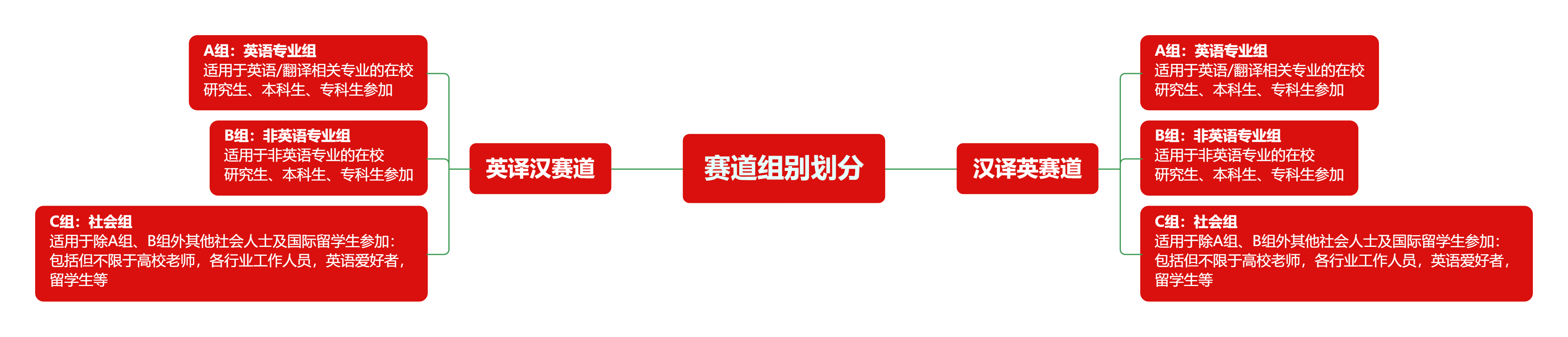 说明:原则上一位参赛选手可同时报名参加“英译汉”和“汉译英”两个赛道,组别选择上需遵守大赛规定,选择适合自己身份的组别,不可跨组别参赛,跨组别参赛视为无效作品!