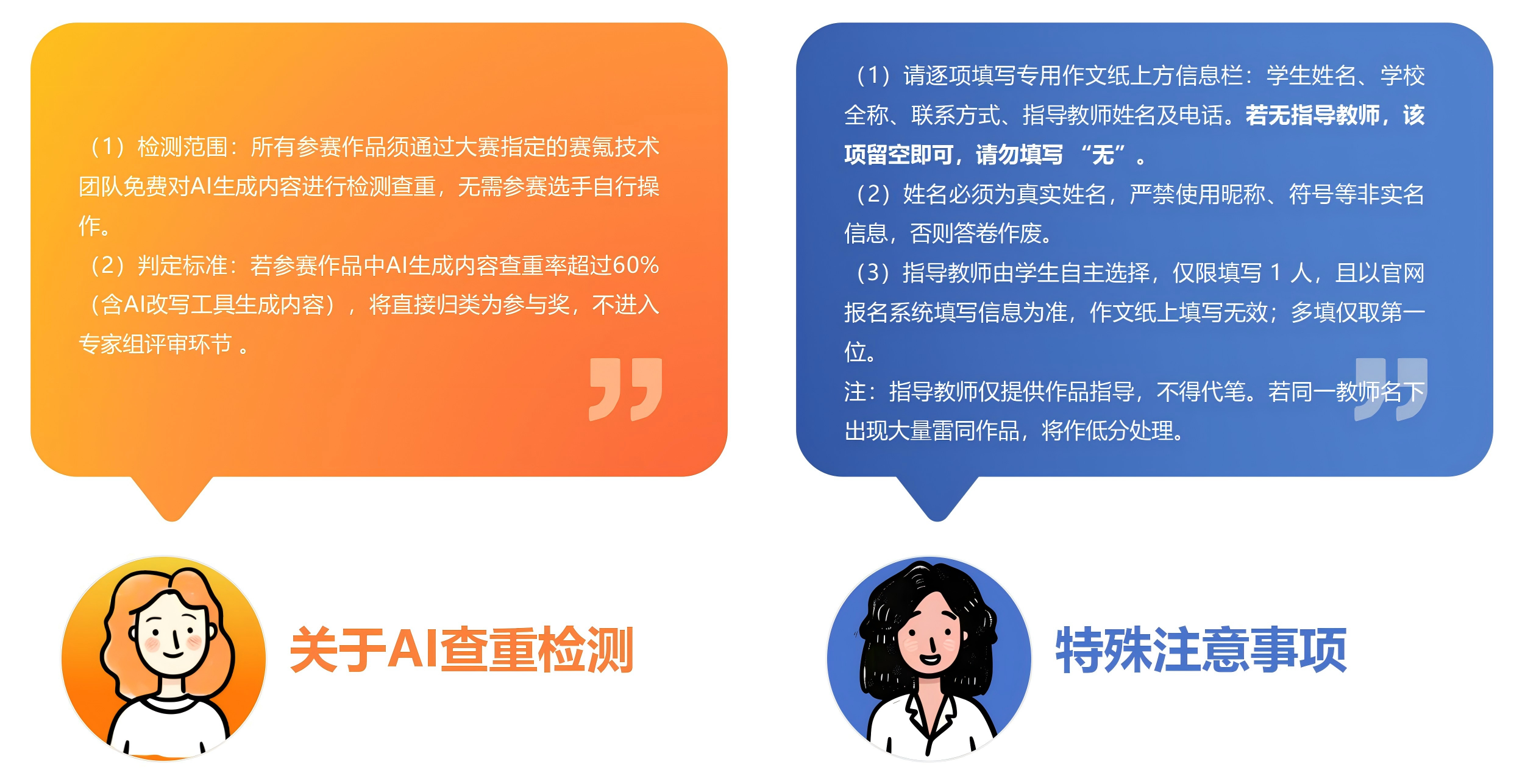 参与奖:其余提交有效作品但未获奖的,或作品经检测AI生成内容查重率超过60%的参赛选手均获得纸质版(参与奖)参赛证书。