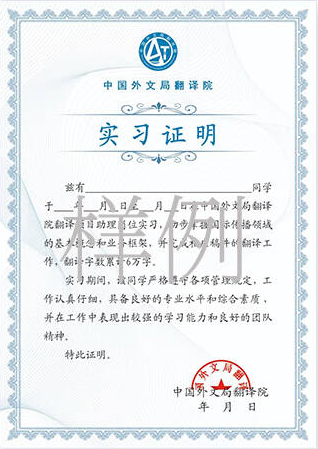 ● 中国外文局翻译院开具的实习证明(含6万字翻译量)